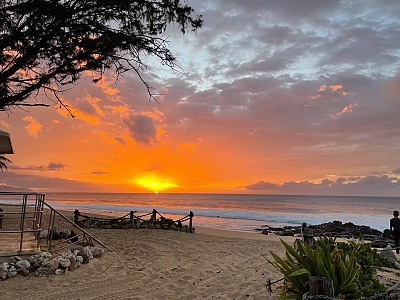 하와이 북쪽 바닷가 해질 때